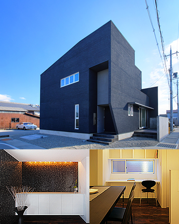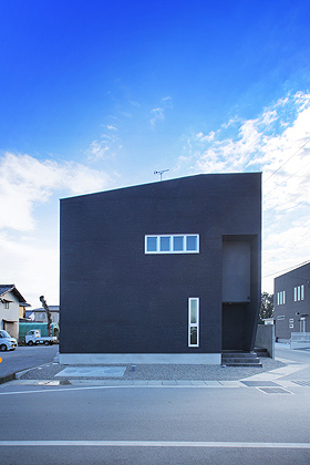 外部は、複数のboxを組み合わせ、色をダークグレーに統一することで、シンプルでモダンさを強調し、ナナメ壁や出窓、ガルバリューム鋼板製の庇、インターホンカバーなどを配置することで、オリジナリティーのある外観を形成しました。